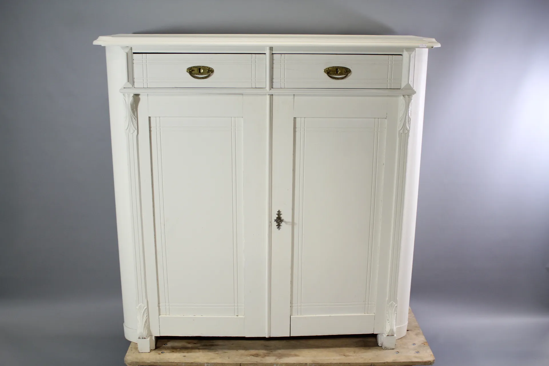 1. Skänk i målad furu med mässingsbeslag nyrenässans