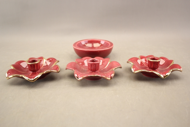 93. Skål och ljusstakar 3 st "Rubin" Gefle