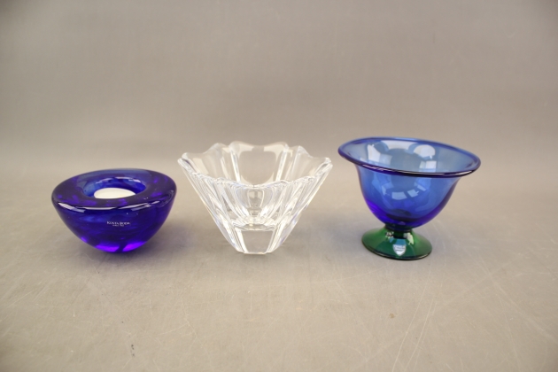 185. Skålar 2 st och ljuslykta Orrefors och Kosta Boda