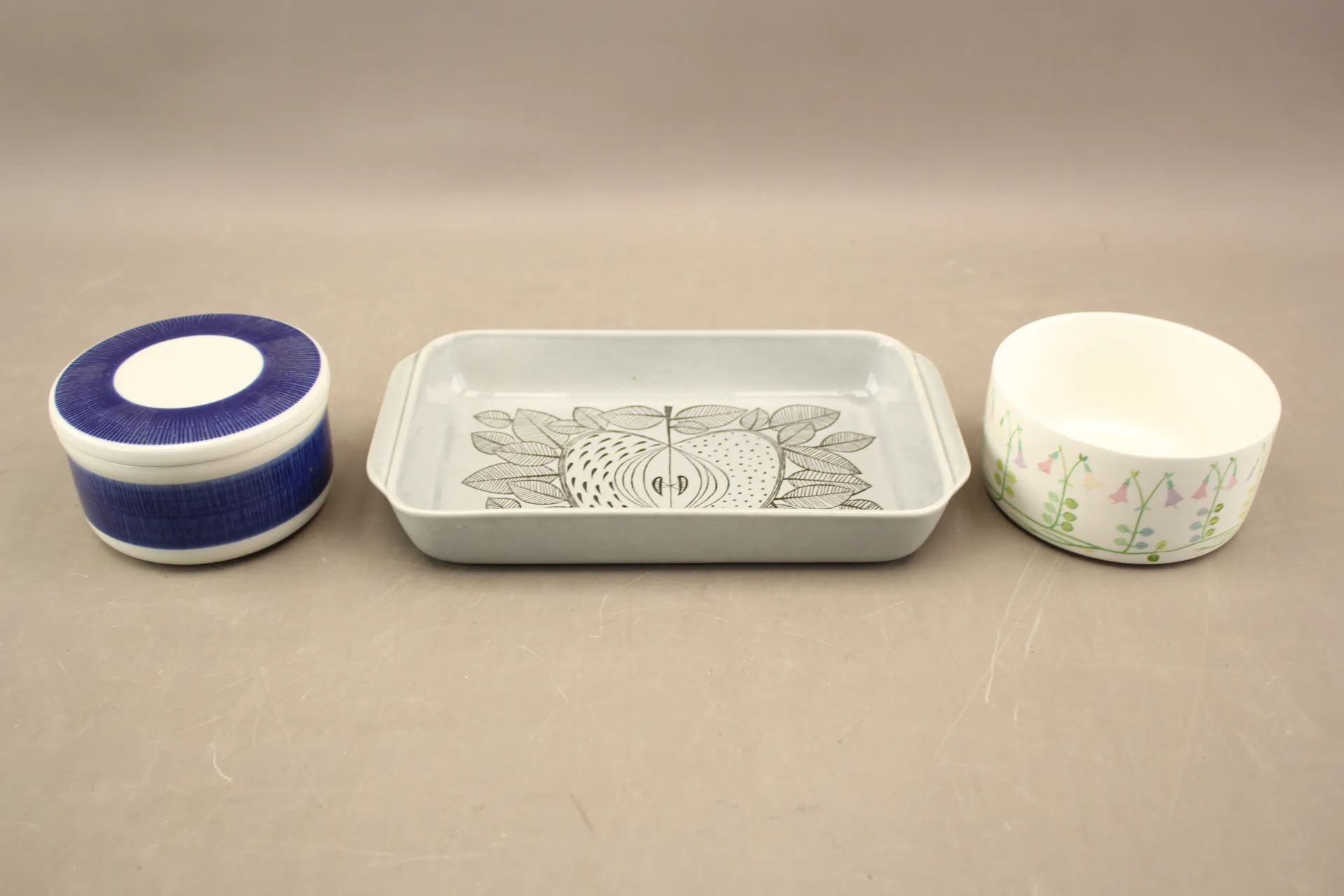 412. Skålar 2 st och uppläggningsfat bla Gustavsberg