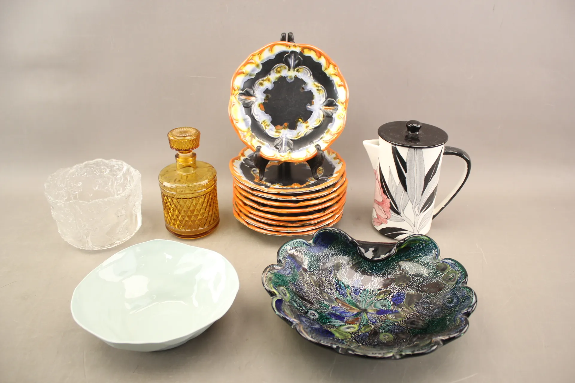 409. Skålar 3 st, assietter 9 st, kanna och flaska bla Villeroy & Boch och Italien
