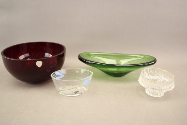 137. Skålar 3 st och ljuslykta bla Iittala, Trelleborg och Orrefors