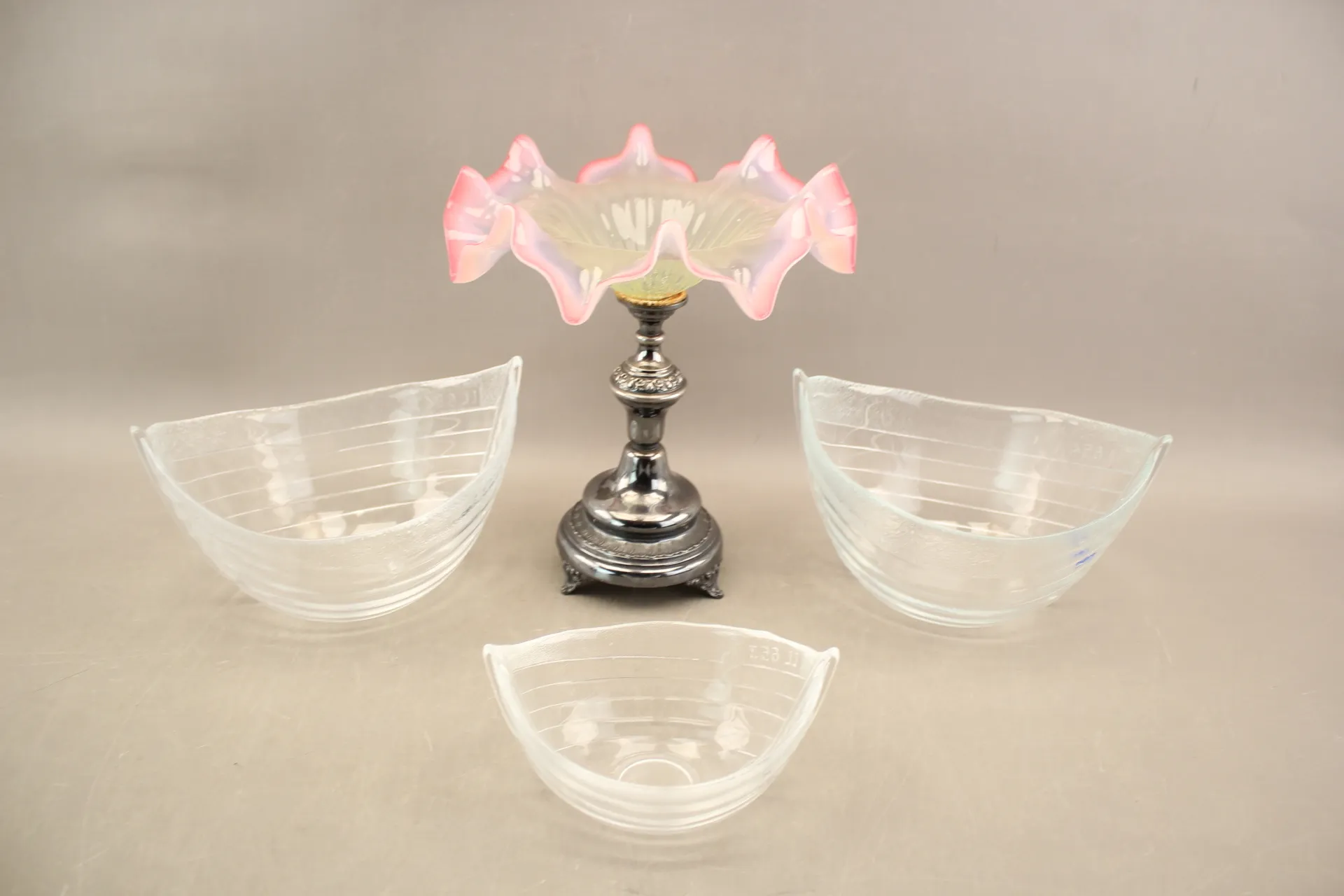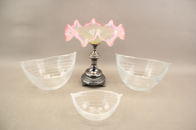 16. Skålar Nybro 3 st och visitkortsskål på fot i glas och nysilver