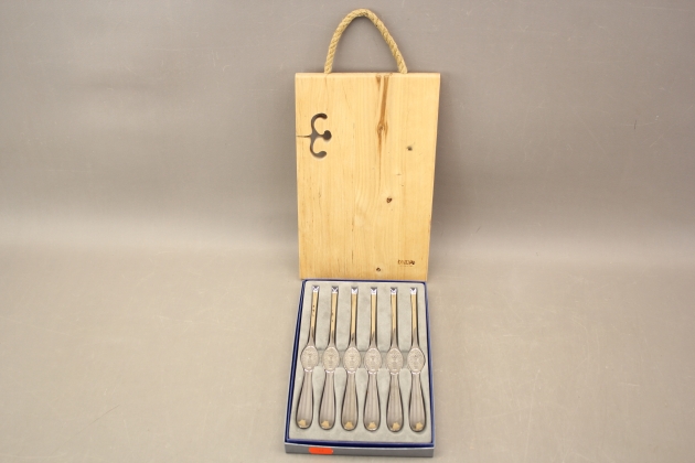 105. Skaldjursbestick Gense och skärbräda Kanevad