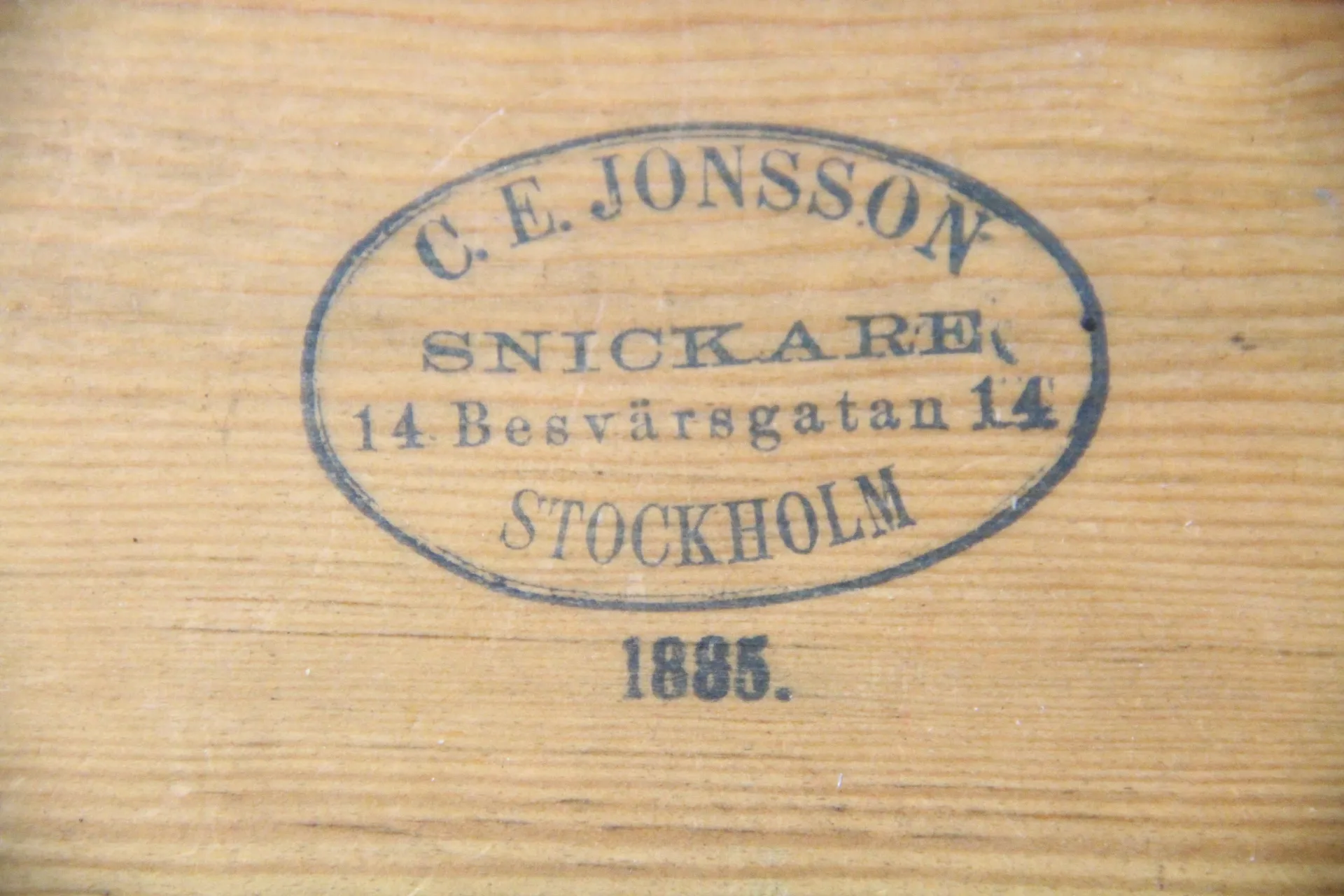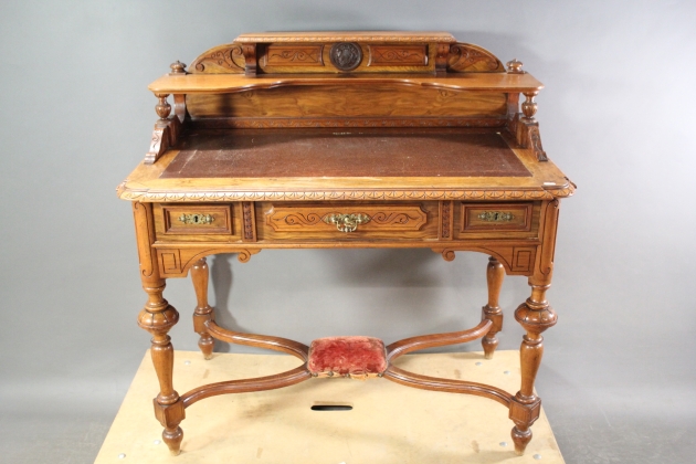 245. Skrivbord i nyrenässansstil Snickare C.E.Jonsson Stockholm med skinn på skivan och mässingsbeslag