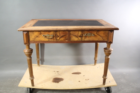 259. Skrivbord med skinn på skivan och mässingsbeslag