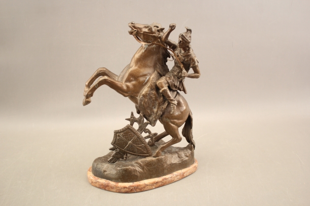 92. Skulptur i metall på marmorsockel