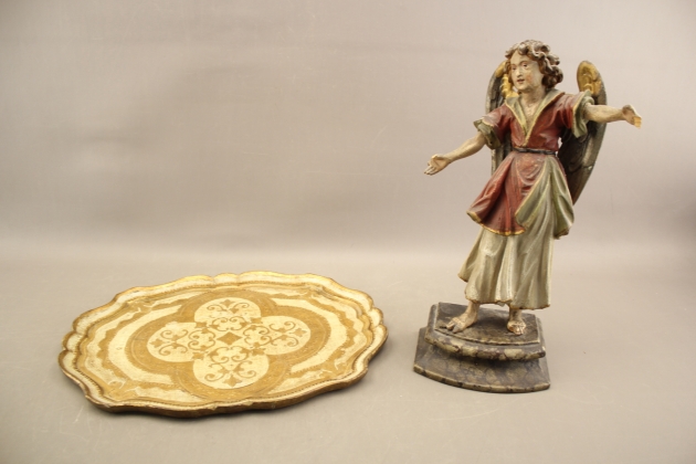 391. Skulptur och bricka i trä