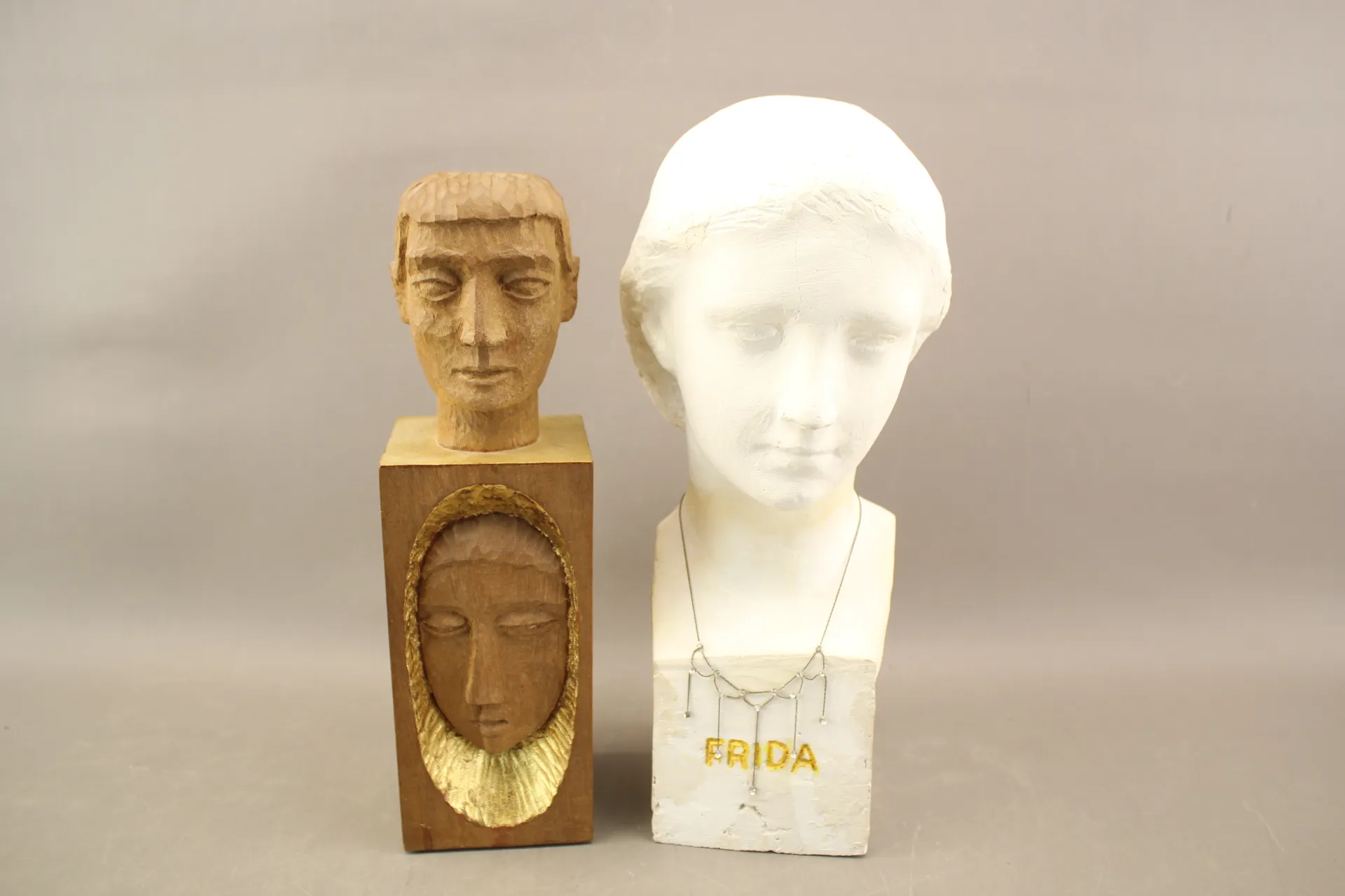 86. Skulpturer 2 st i gips och trä Torsten Hjelm