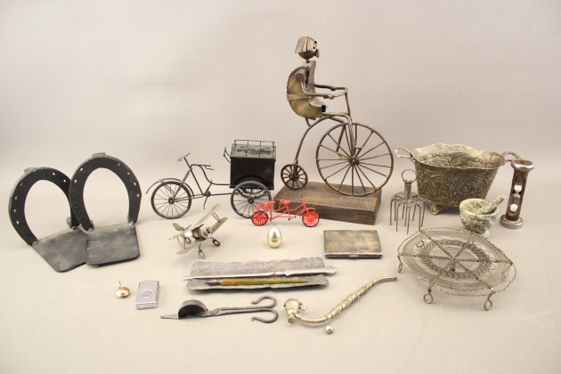 168. Skulpturer, bokstöd, mm i metall