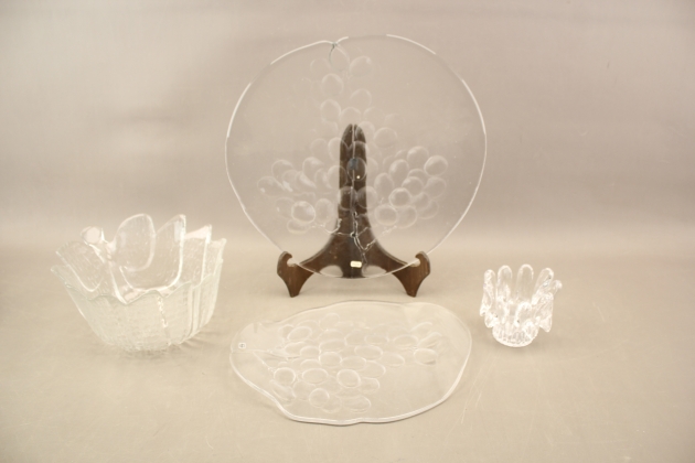 204. Skål "Eden" Lars Hellsten Orrefors, ljuslykta "Sunflower" Kosta och fat 2 st