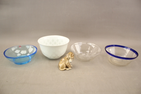 193. Skålar 4 st och figurin bla Iittala och Bing & Gröndahl