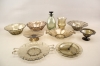 156. Skålar 5 st, fat 3 st, karaff och vas i färgat glas