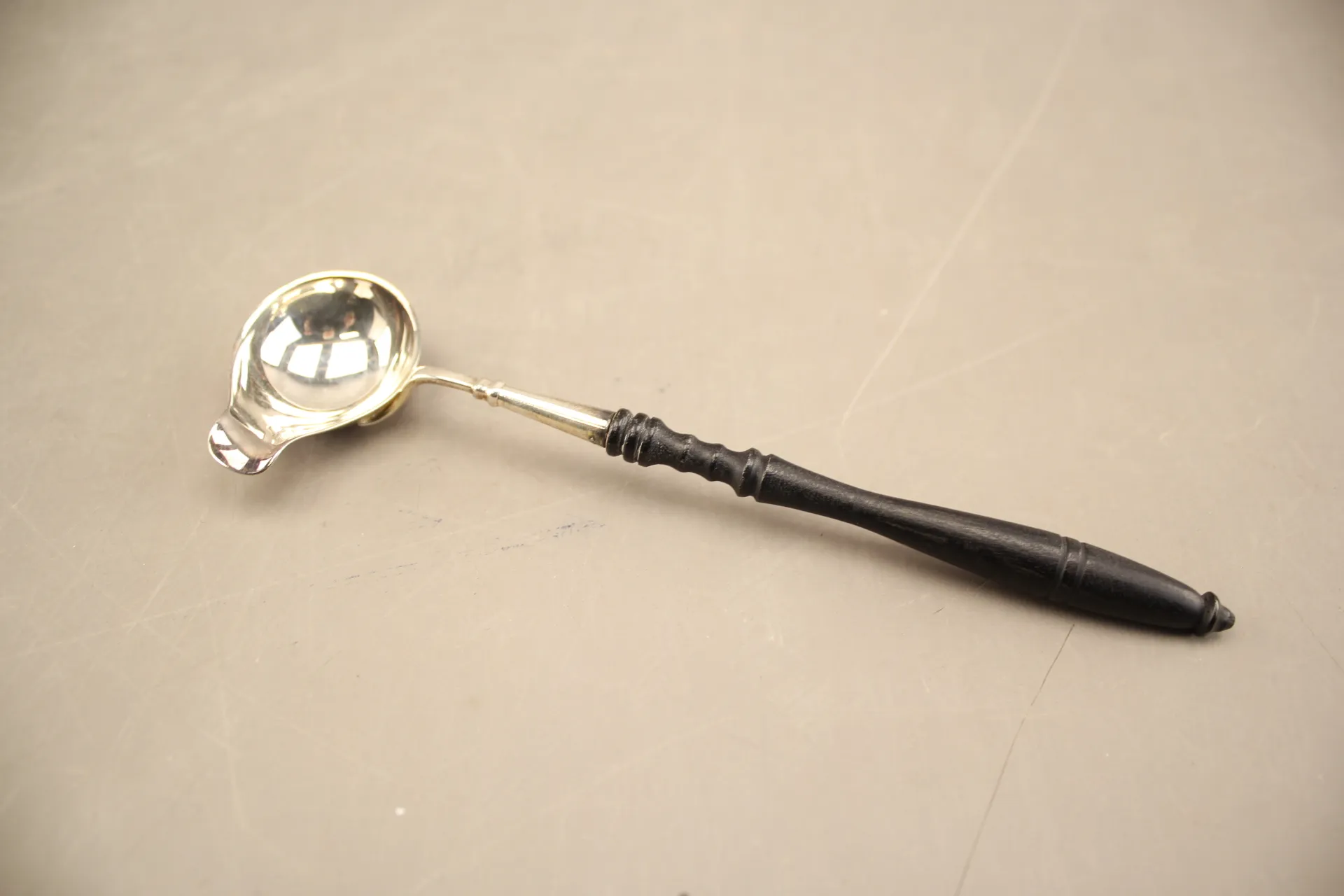 111. Slev i silver med trähandtag