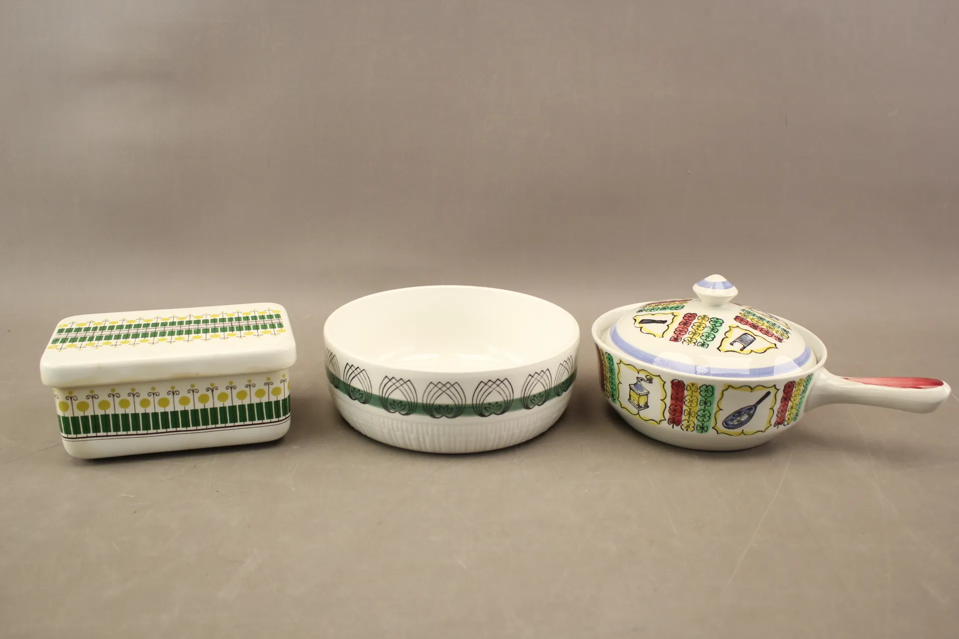 34. Smörask Rörstrand "Wasa", karott och skål Gefle