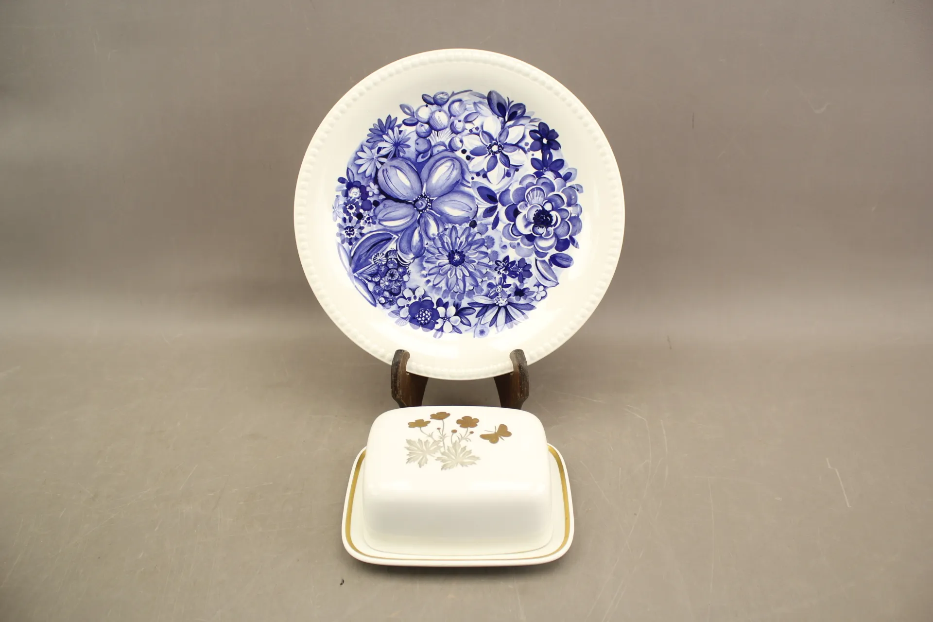 6. Smörask Royal Copenhagen och tallrik "Blå Blomster" UE