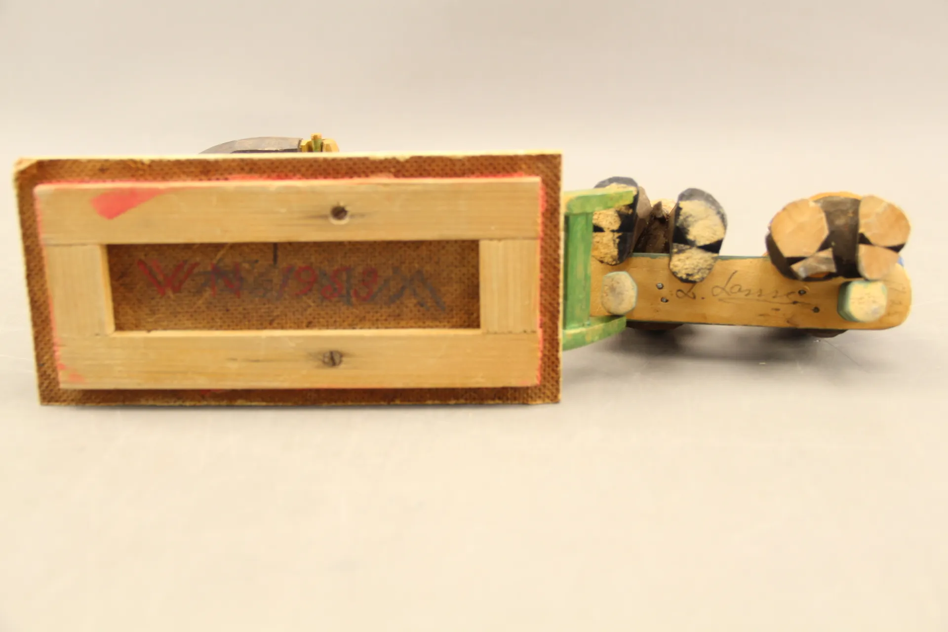 54. Snidade träfigurer 3 st varav 1 signerad L. Larsson