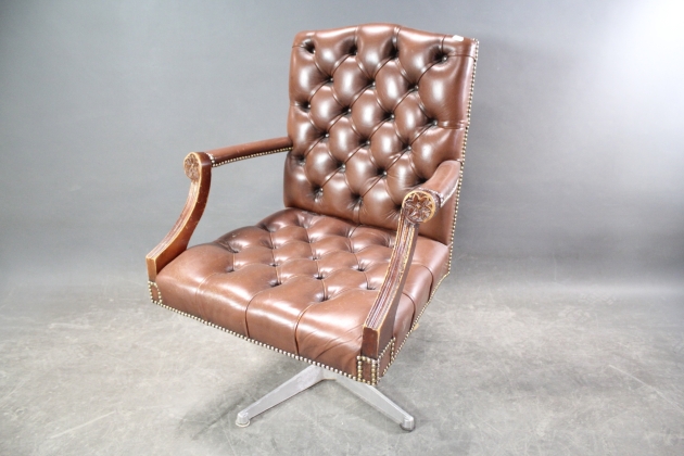 226. Snurrfåtölj i skinn engelsk stil 1900-tal