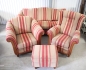Soffan B: 200 cm, fåtöljerna har slitna armstöd