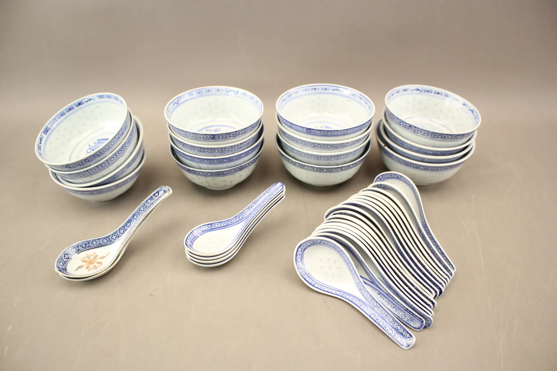 233. Soppskålar 16 st och skedar 23 st Kina