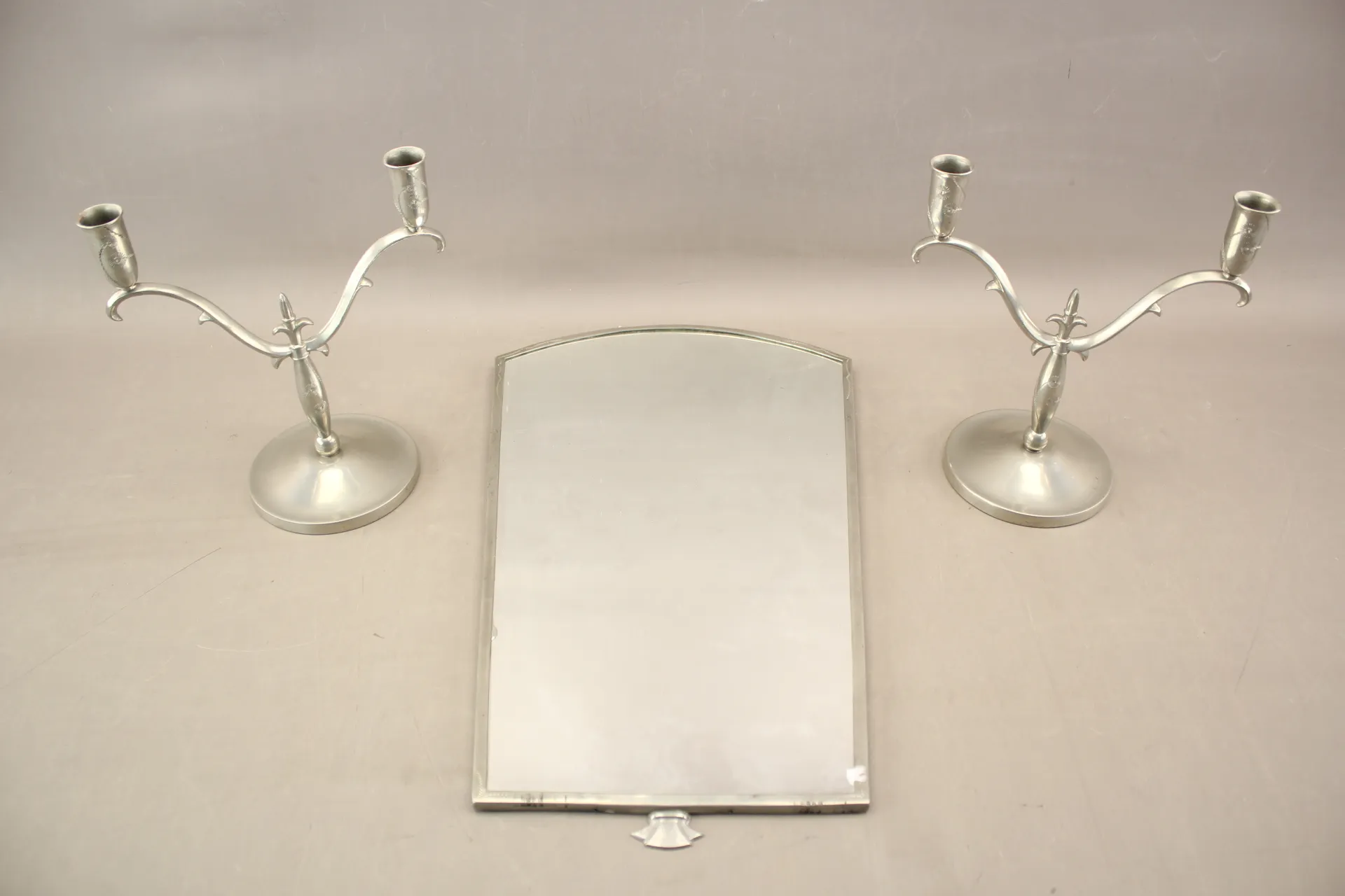 349. Spegel och ljusstakar 1 par i tenn