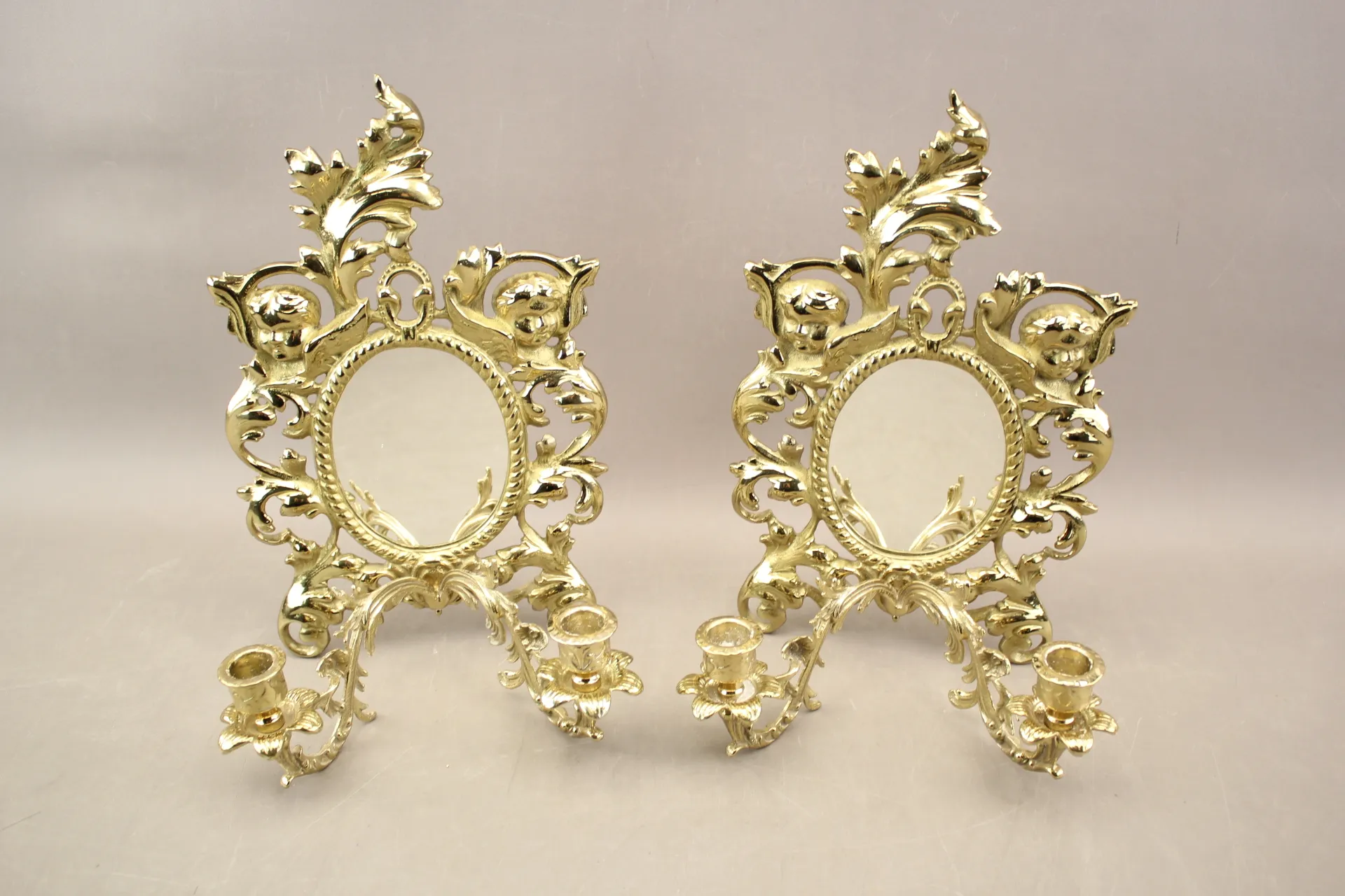 138. Spegellampetter i mässing Rokokostil L&S Gelbgjuteri 1 par
