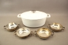336. Stekgryta i emaljerat gjutjärn och formar 4 st Gense