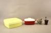 310. Stekgryta i emaljerat gjutjärn Husqvarna, brödburk och mortlar 2 st