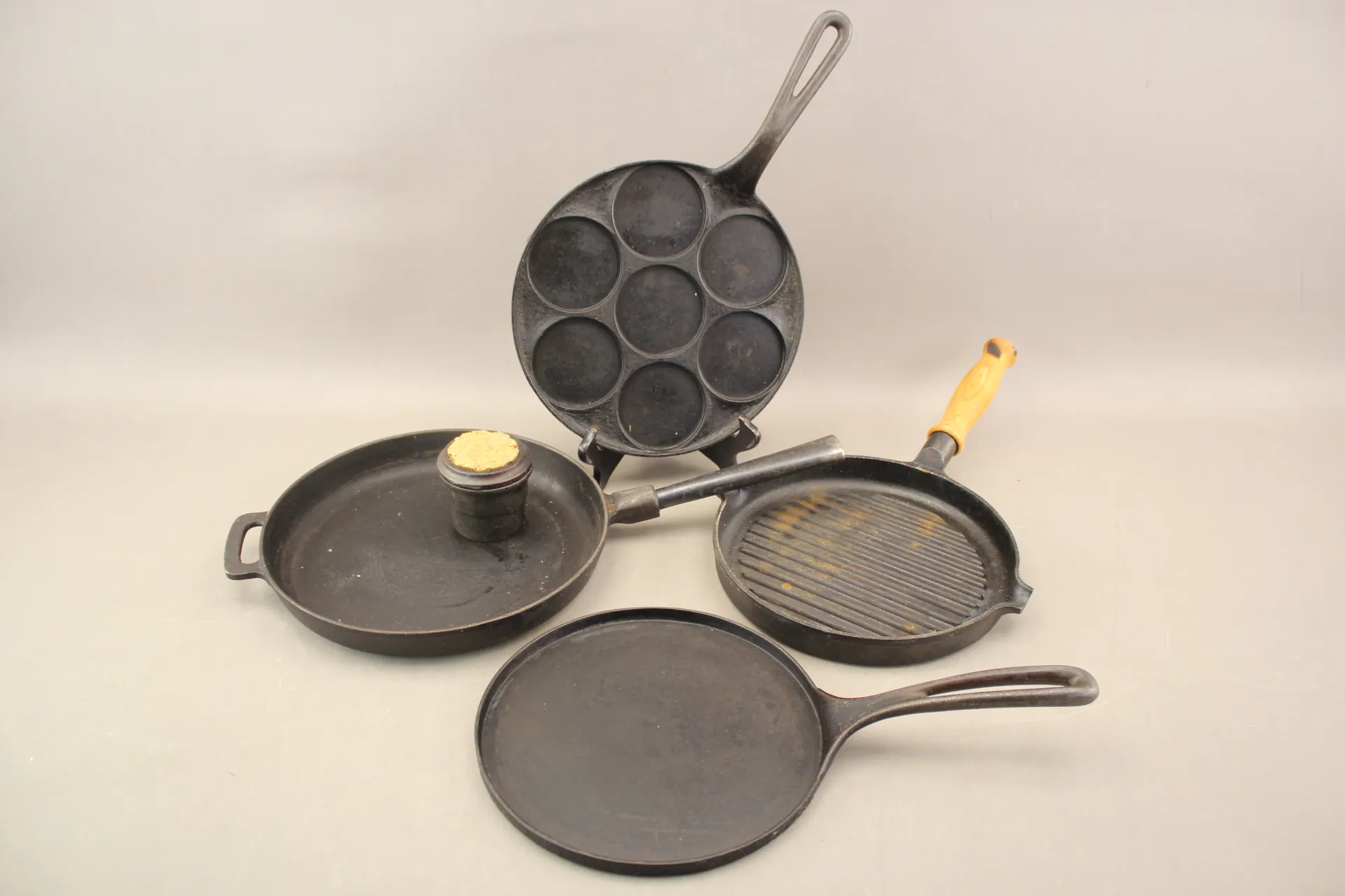 370. Stekpanna, plättlagg, pannkakslagg, grillpanna mm i gjutjärn