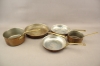 381. Stekpannor 3 st och kastruller 2 st i koppar bla Krögarhuset