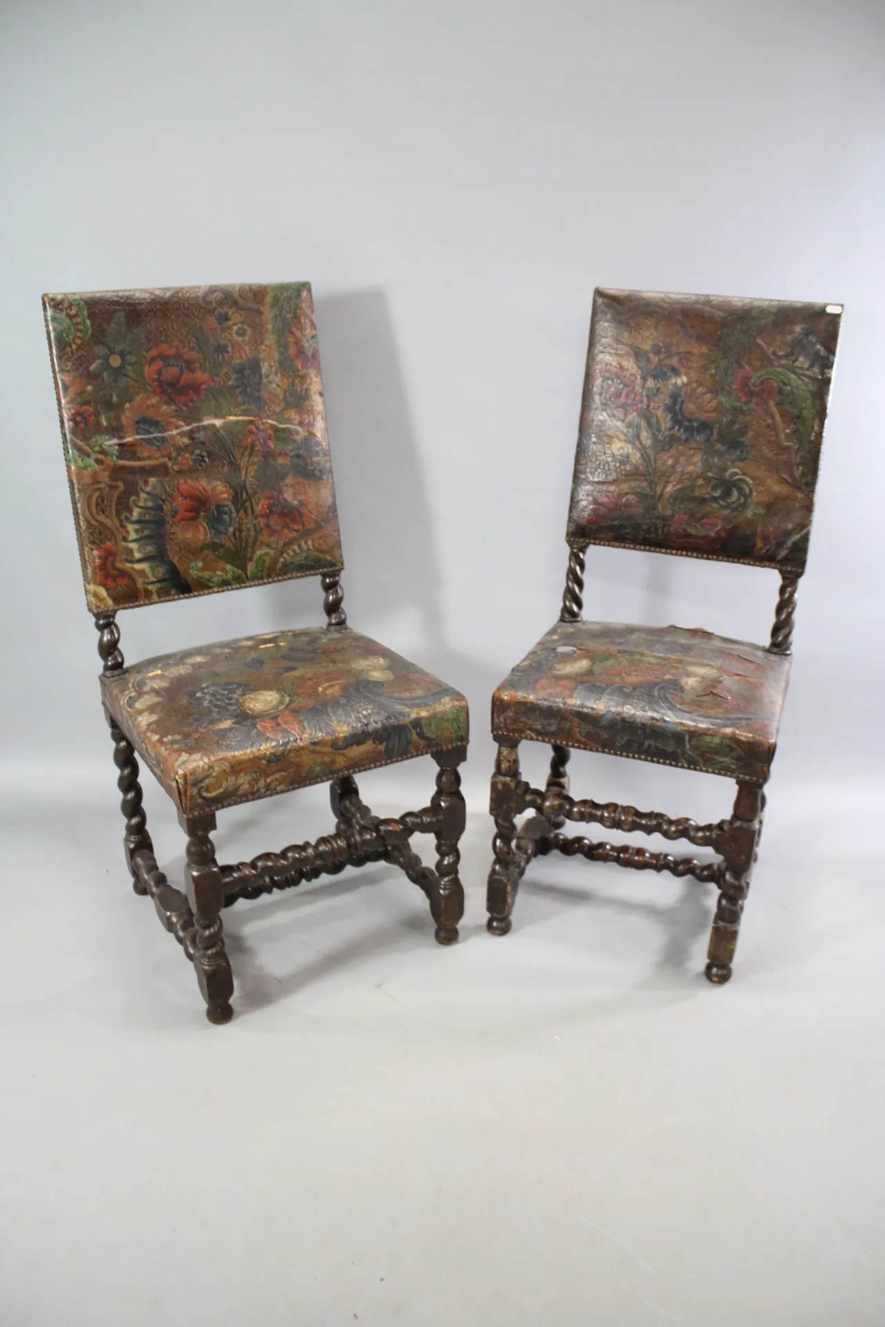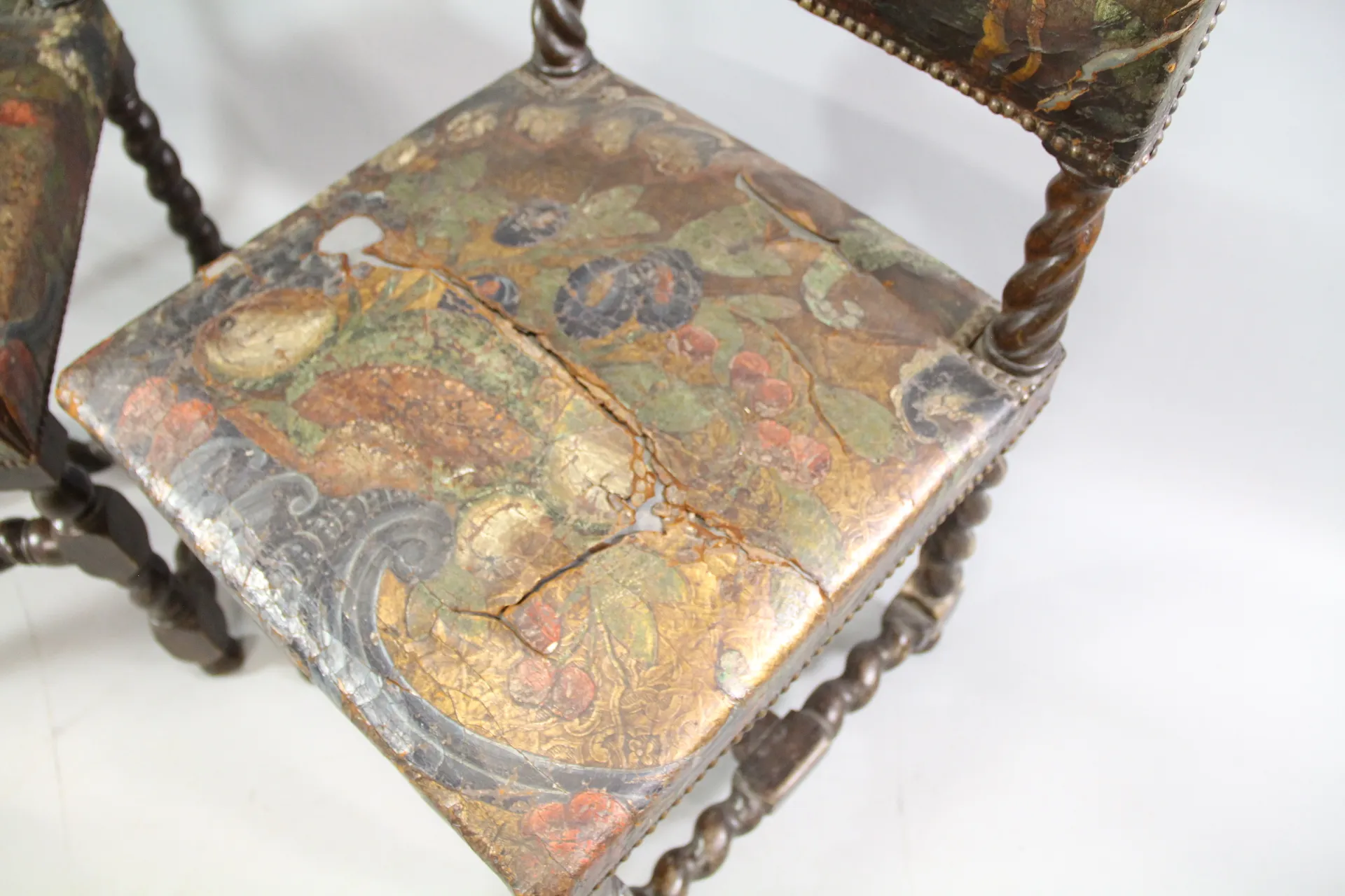 114. Stolar i barockstil gyllenläder 1 par