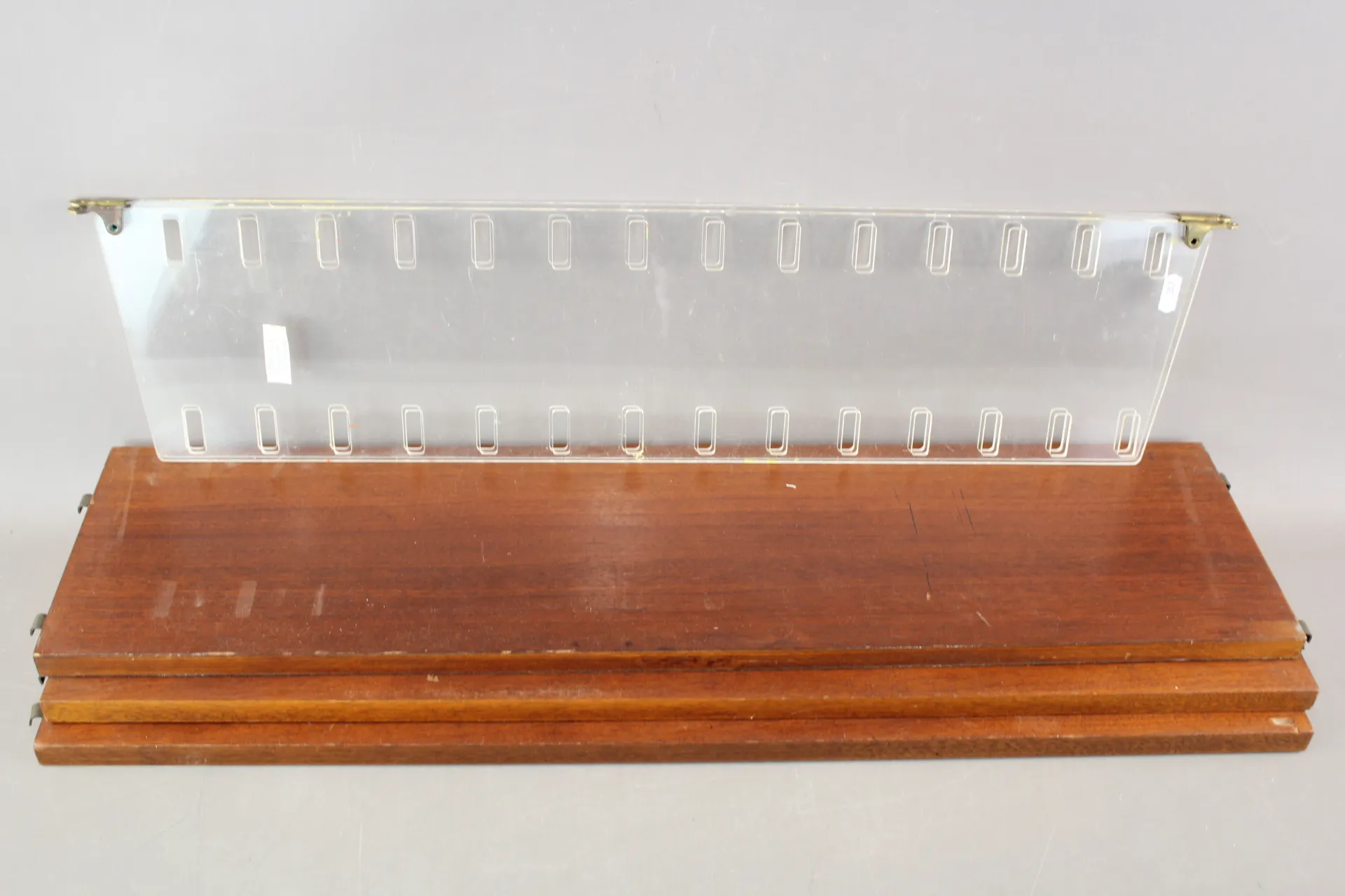 357. Stringhylla med gavlar i plexi 2 st och hyllplan 3 st