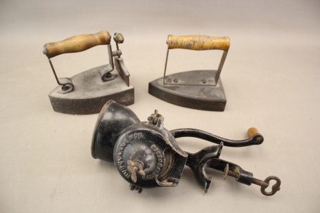 431. Strykjärn 2 st och kvarn bla Husqvarna