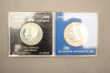 220. Svenska minnesmynt i silver 2 st