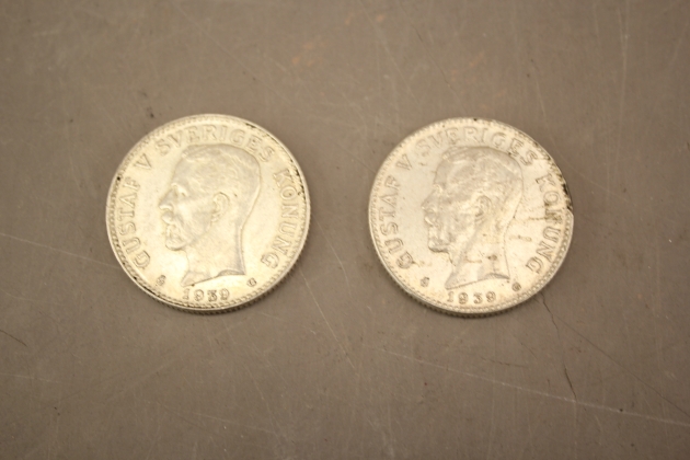 78. Svenska silvermynt 2 kr 1939, 2 st