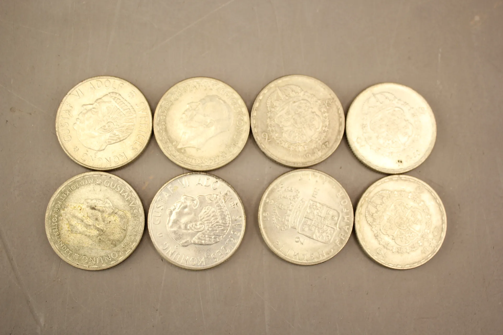 203. Svenska silvermynt 2 kr 1942-1946, 8 st