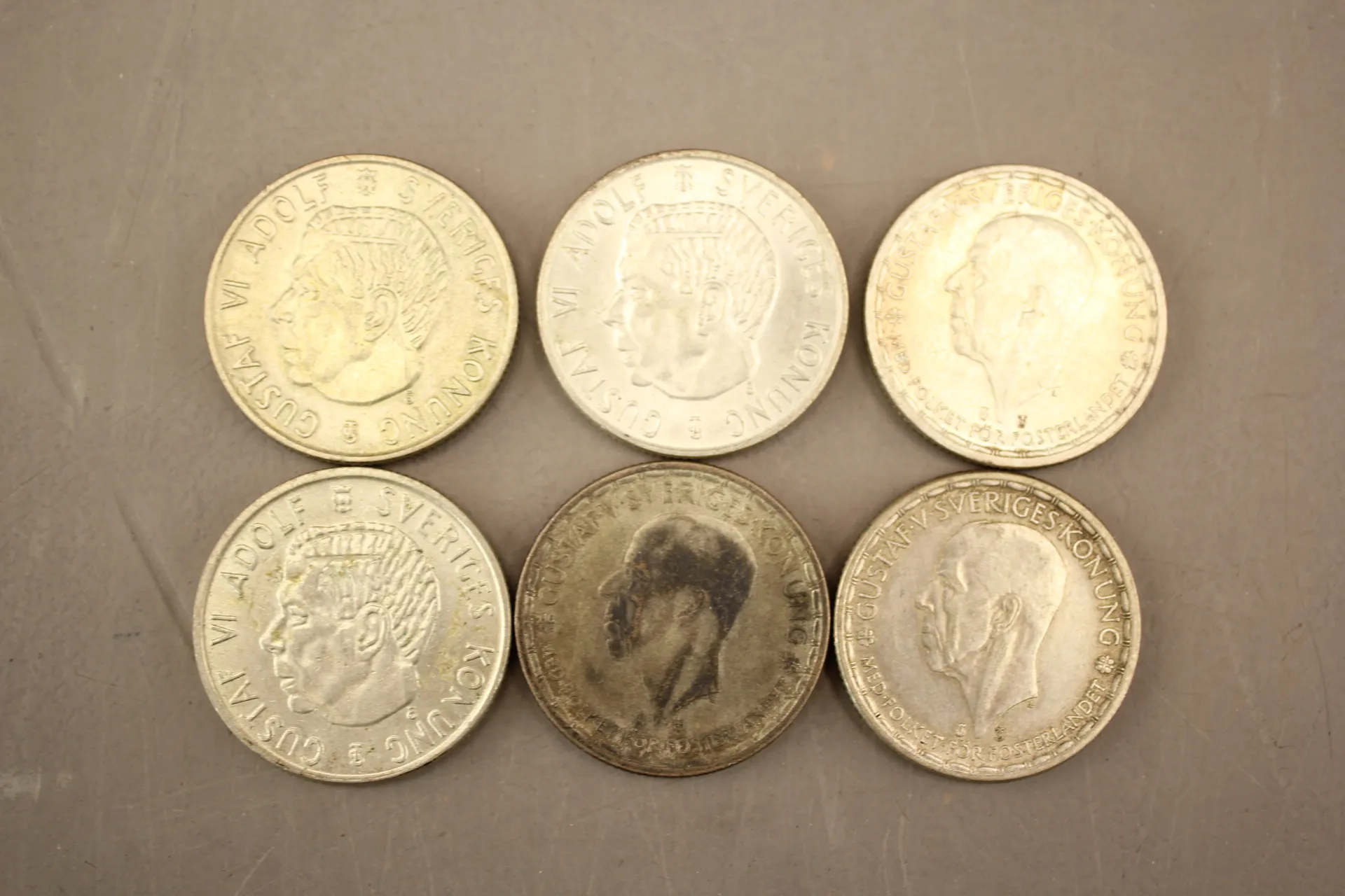 208. Svenska silvermynt 2 kr, 1942-1966, 6 st