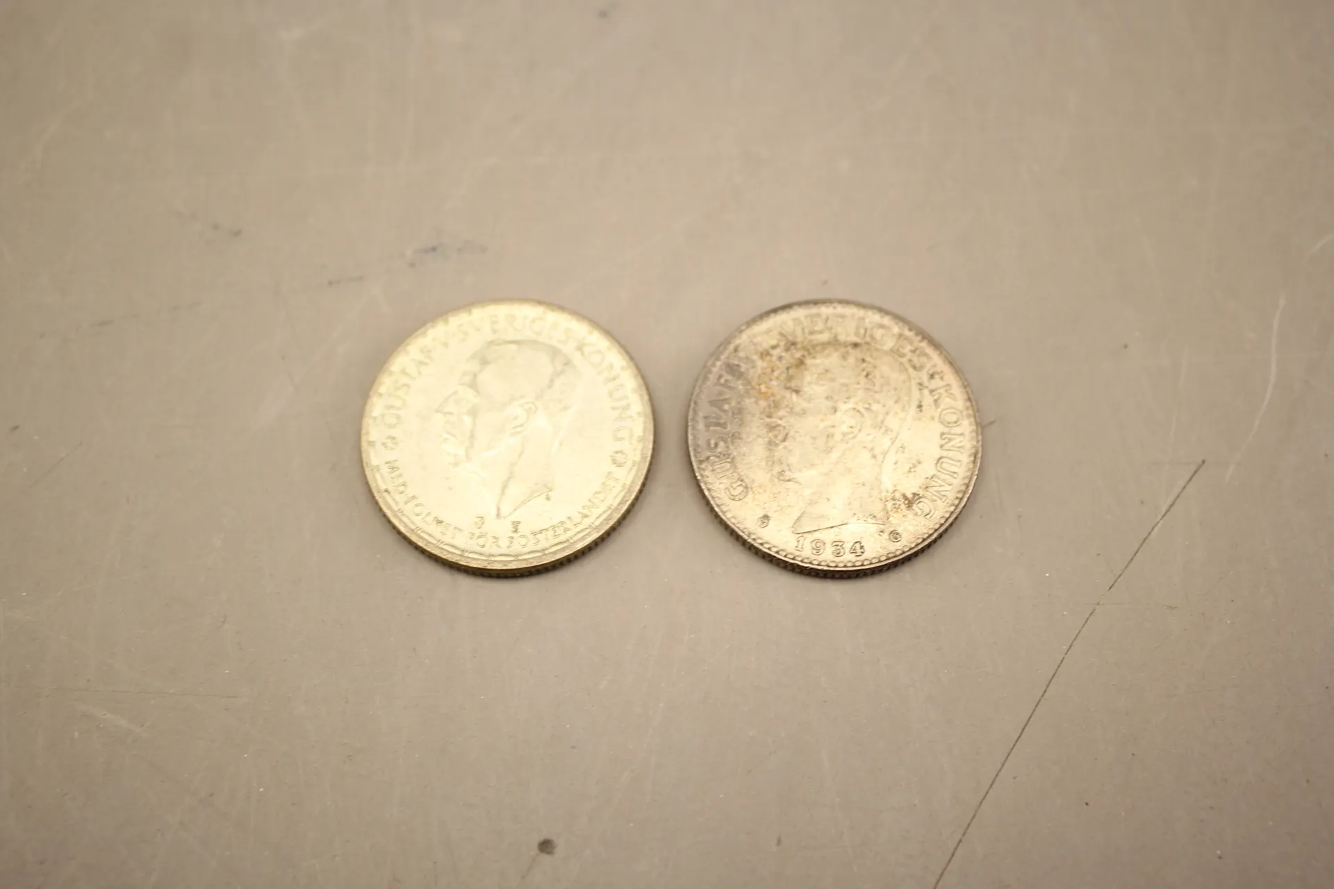 62. Svenska silvermynt 2 kr, 2 st 1950 och 1934
