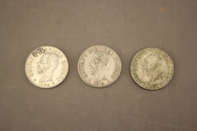 80. Svenska silvermynt 2 kr 3 st 1913, 1934 och 1942