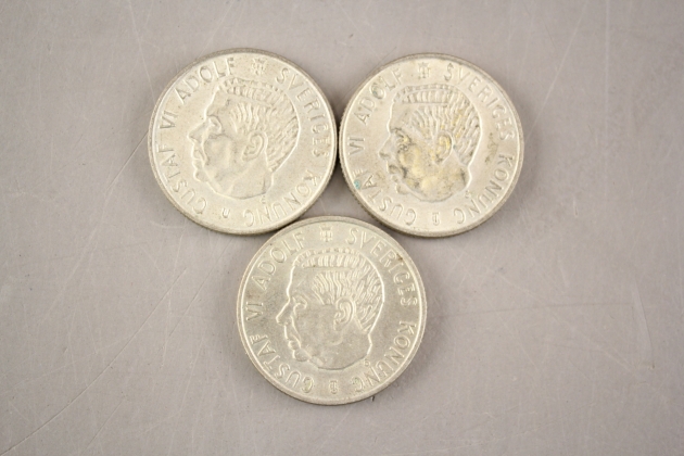 234. Svenska silvermynt 2 kr 3 st