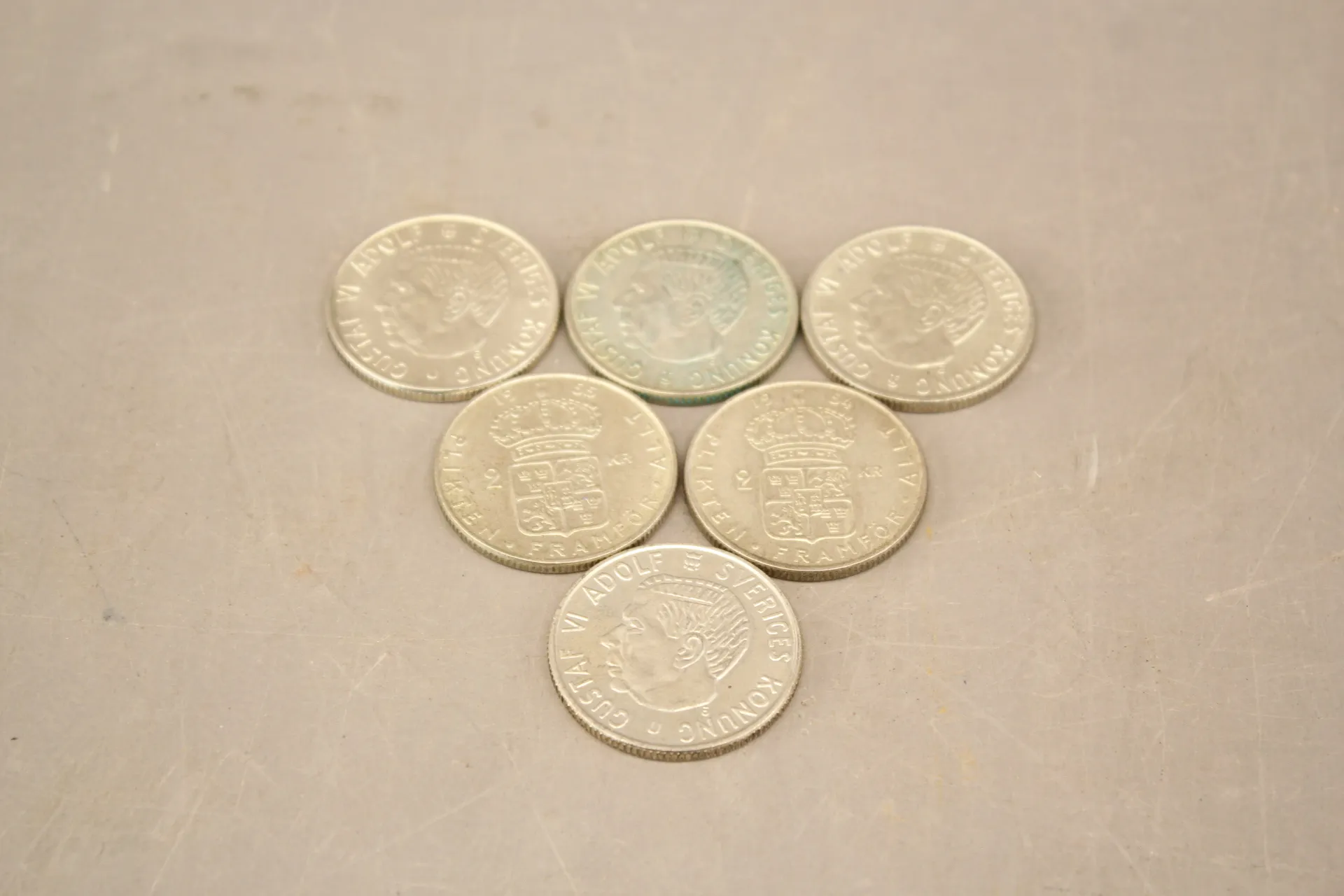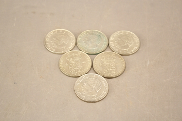 374. Svenska silvermynt 2 kr 6 st
