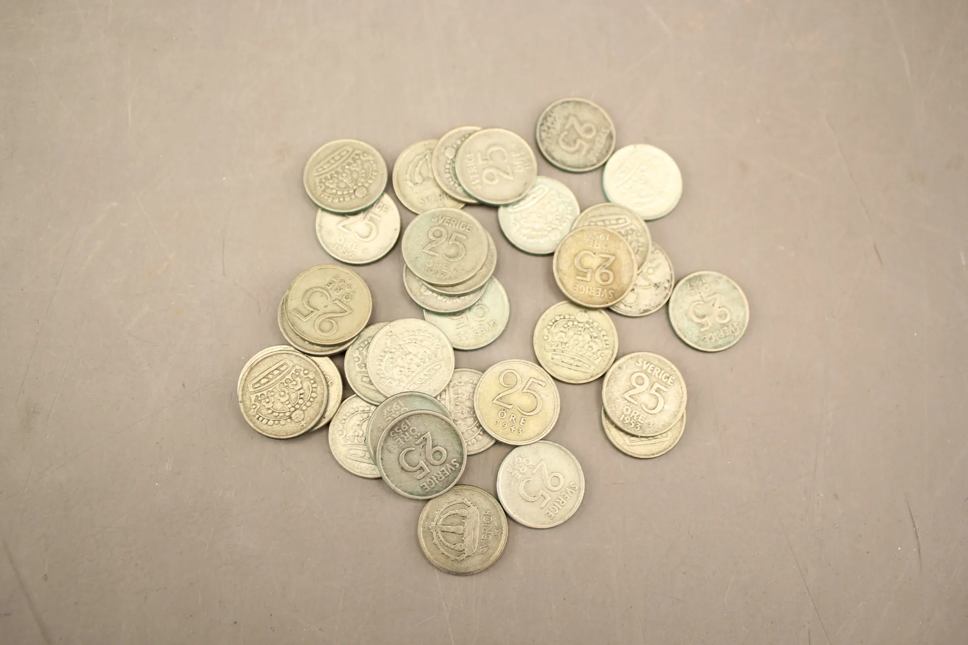 239. Svenska silvermynt 25 öringar 33 st