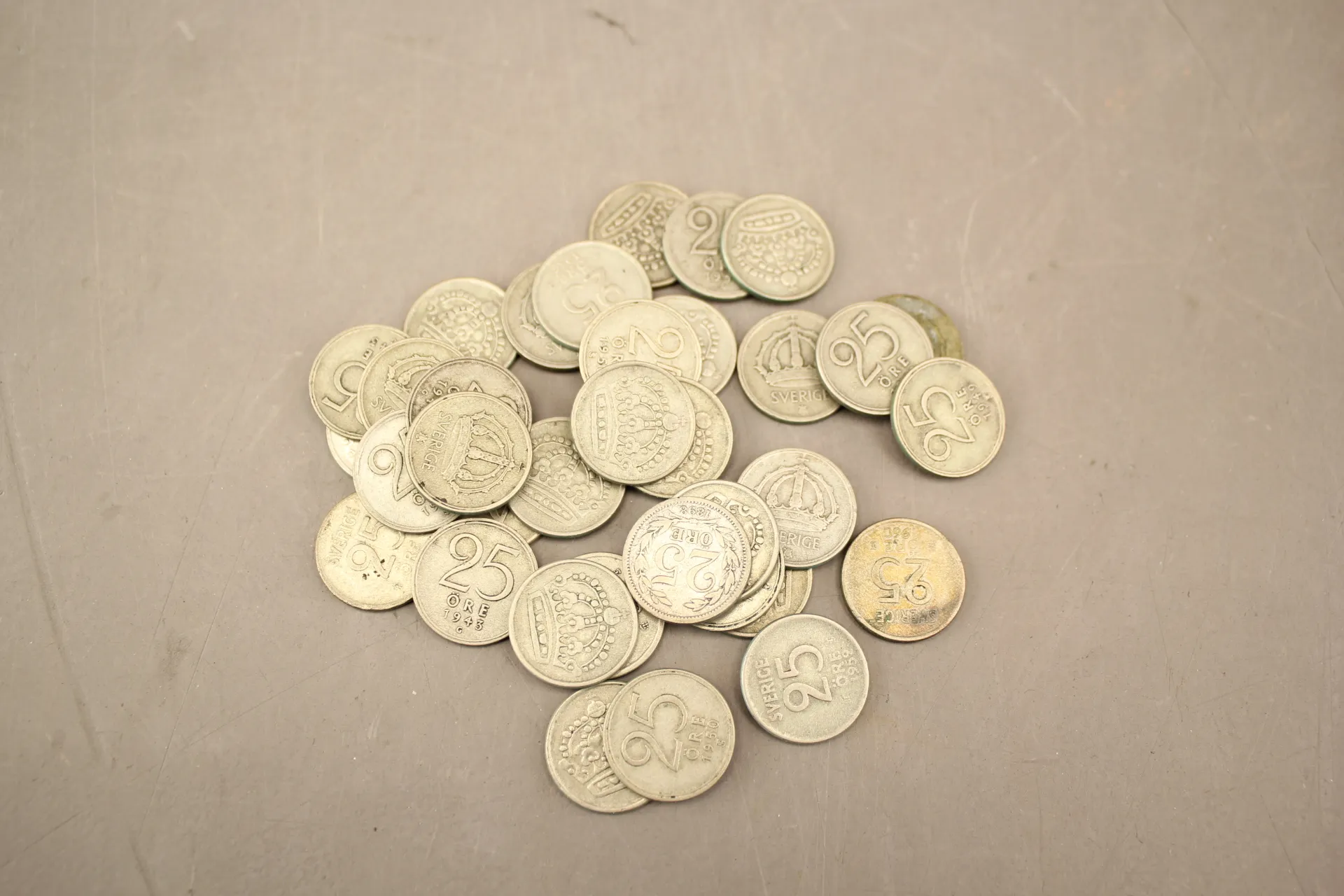 237. Svenska silvermynt 25 öringar 35 st