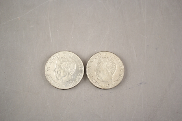 217. Svenska silvermynt 5 kr 1955, 2 st