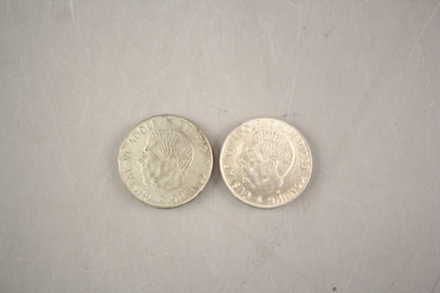 219. Svenska silvermynt 5 kr 1955, 2 st