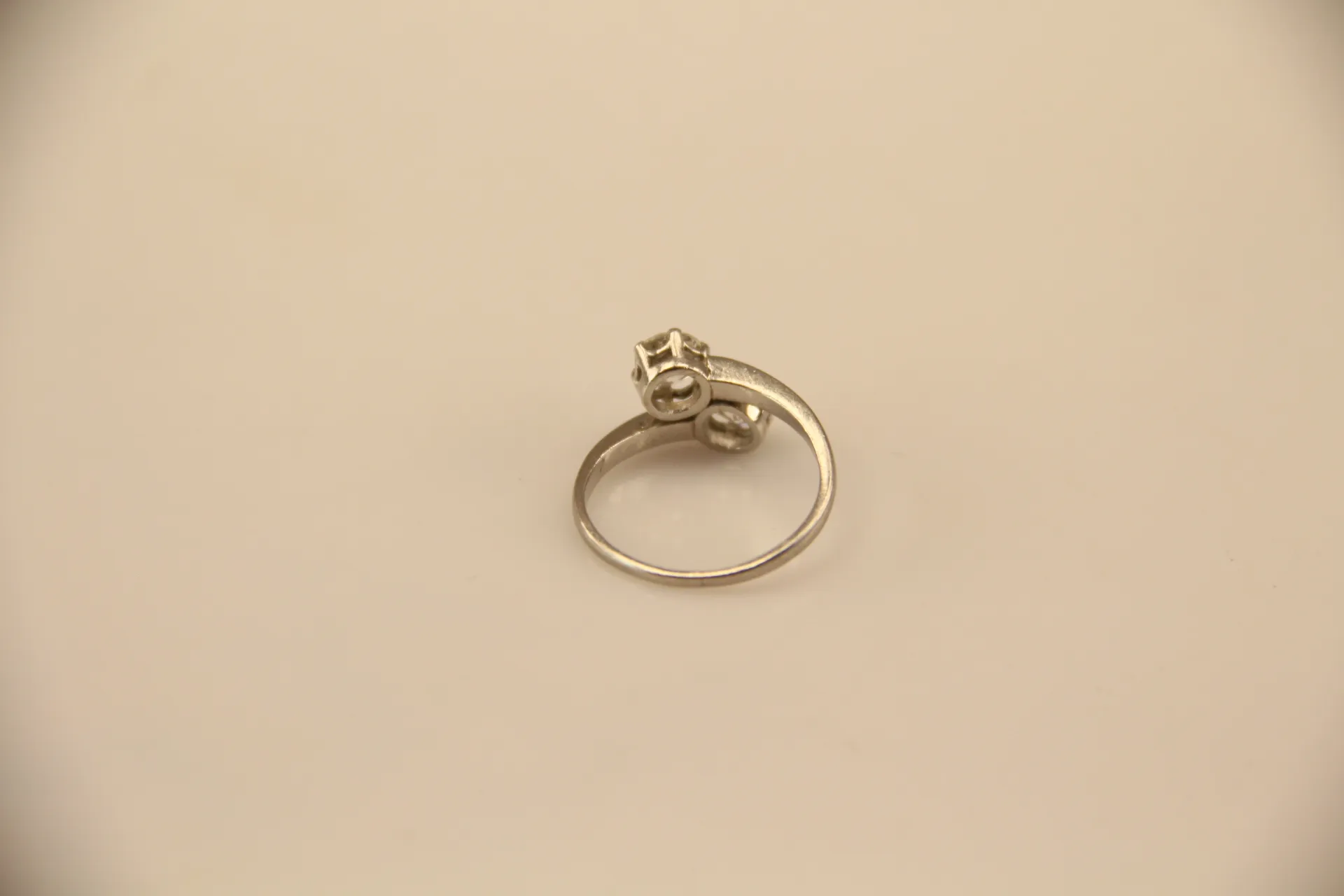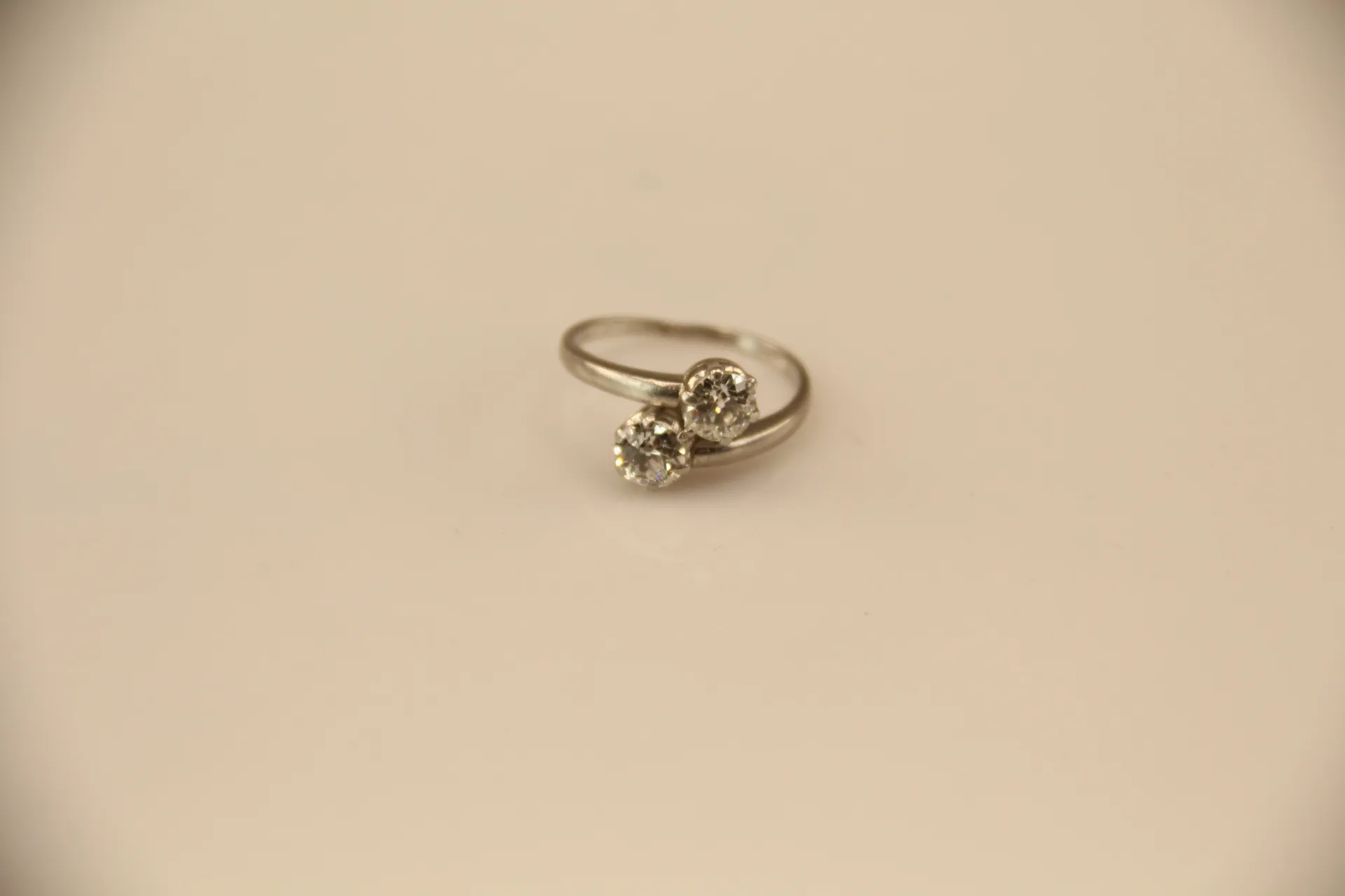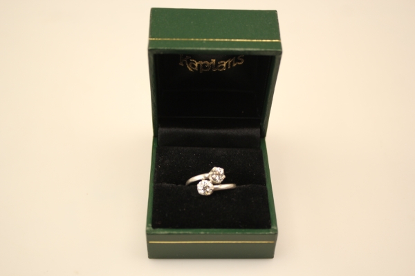 203. SYSKONRING, platina, 2 gammalslipade diamanter ca 1,10 ctv, ca TW-W(G-H)/VS2-SI2, diamanter med nagg, slitna fattningar