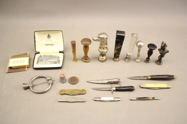 387. Tändare 2 st, knivar 7 st, sigill, mm
