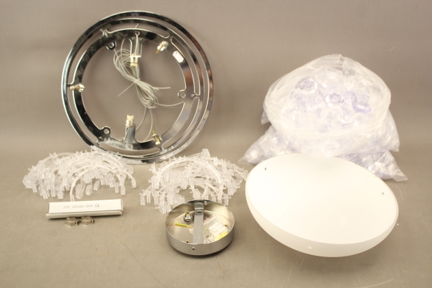 384. Taklampa i glas, metall och plast