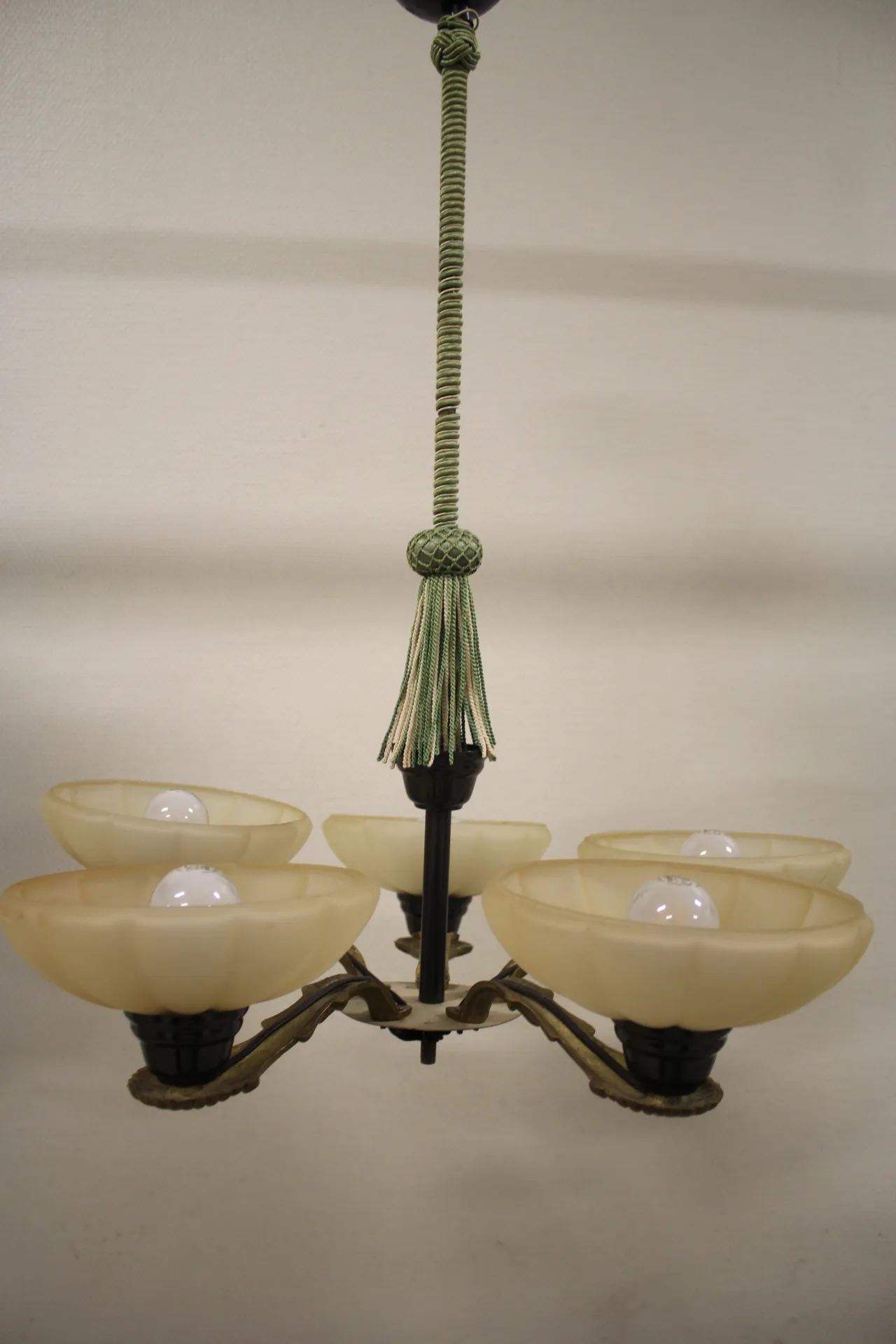 224. Taklampa i glas och metall Art Deco 1920/1930-tal