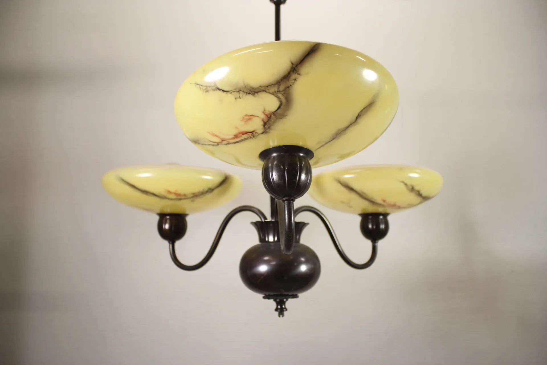 124. Taklampa i glas och metall
